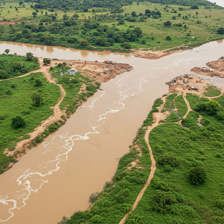 Ghana’s rivers and water bodies are under severe threat from illegal mining (galamsey), industrial waste, and deforestation. What were once clean, life-sustaining waterways are now choked with silt, mercury, and toxic chemicals.